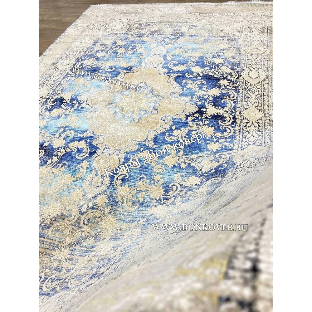 Отличный ковер , правда на размере 160х400 см разместилось две серединки - так даже гармоничнее ! Цвет темно-синий - камера плохо передает
