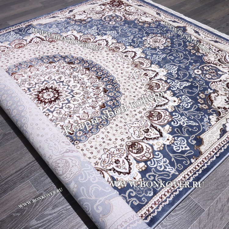 Красивый Турецкий Ковер для гостиной дизайн 017 Синий наполняет интерьер квартиры теплом и уютом, гармонично сочетает в себе изящество и красоту. Он изготовлен из экологически чистого сырья, прочный и долговечный.